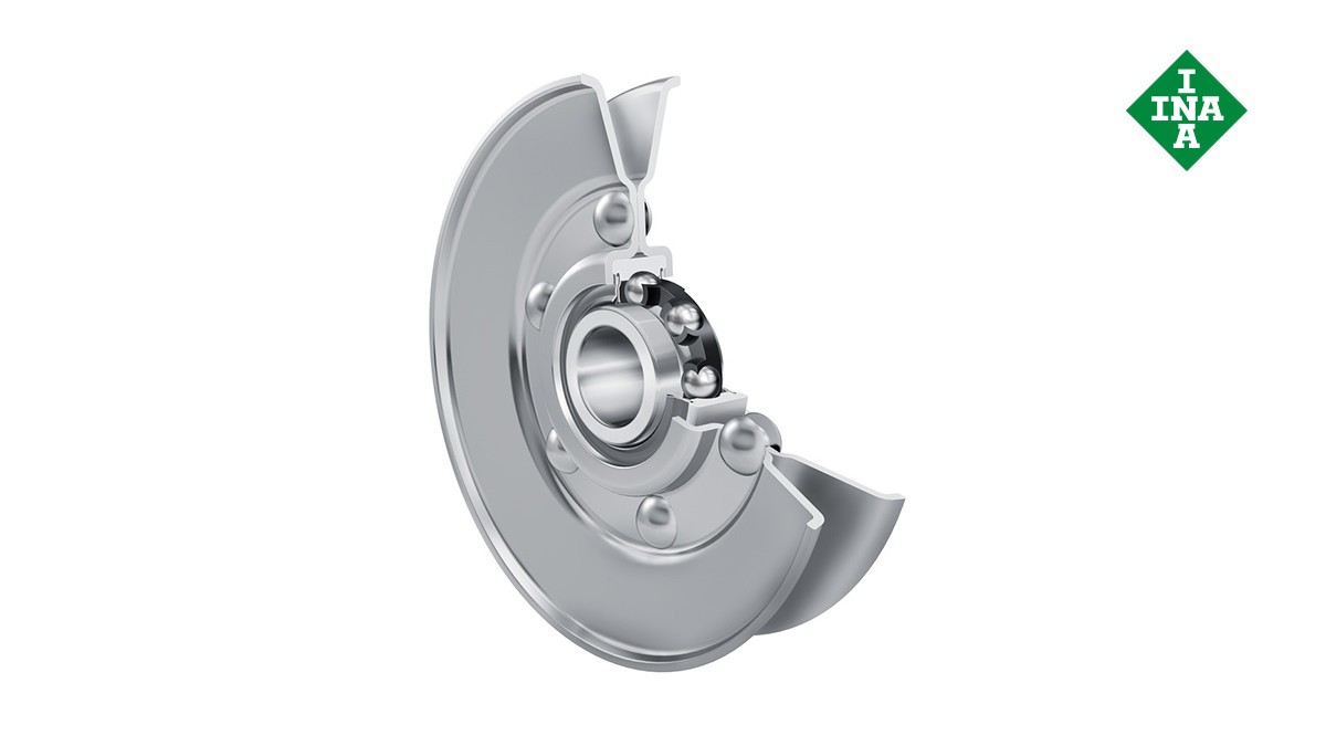 這種即裝即用單元,由兩半深沖成型鋼板鉚接在一起的皮帶輪和深溝球軸承組成。直徑較大的皮帶輪需另外焊接在一起。皮帶輪輪廓上的倒角可防止皮帶受損。由于是鋼板結構,因此附加旋轉質(zhì)量和失衡質(zhì)量較低。
